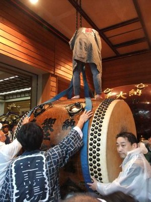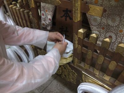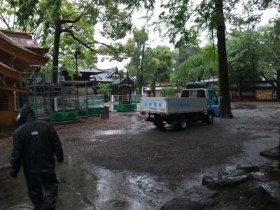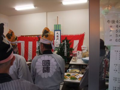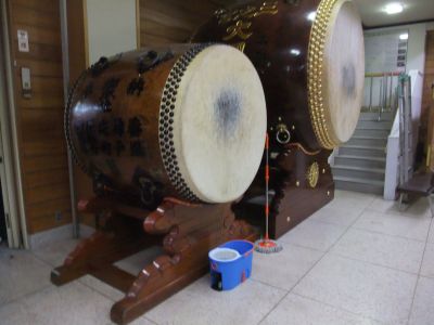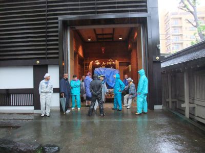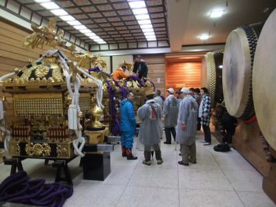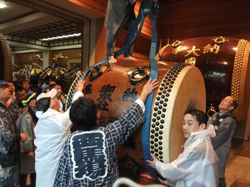 早々に神輿を出すのは中止。御本社は太鼓だけ出してしまうことにした。