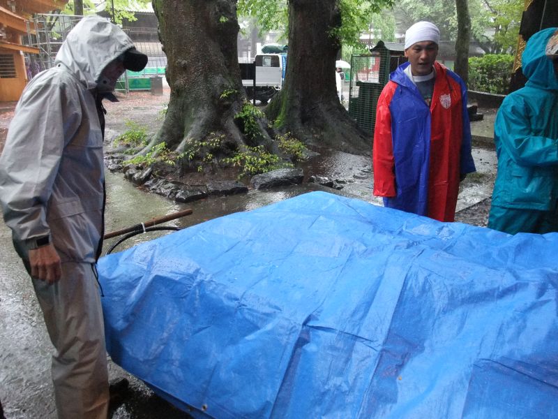 会所も雨の中設営。