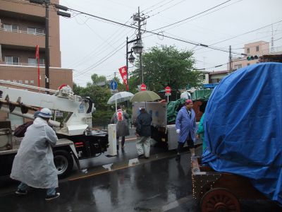 雨の中を番場屋前に移動。何とか仕舞う。