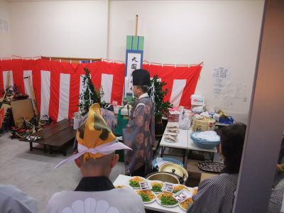 公会堂で恒例のお蕎麦。人数が少ない。