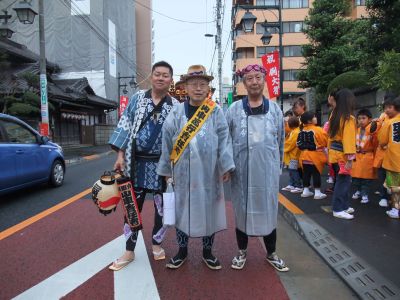 紫は御本社の大祭副委員長、茶は番場の隠居半纏。