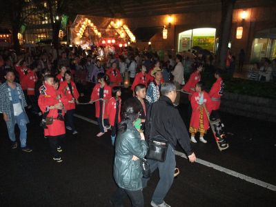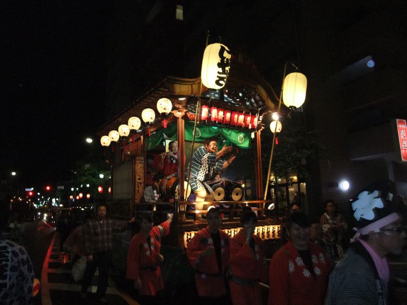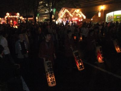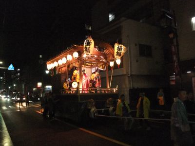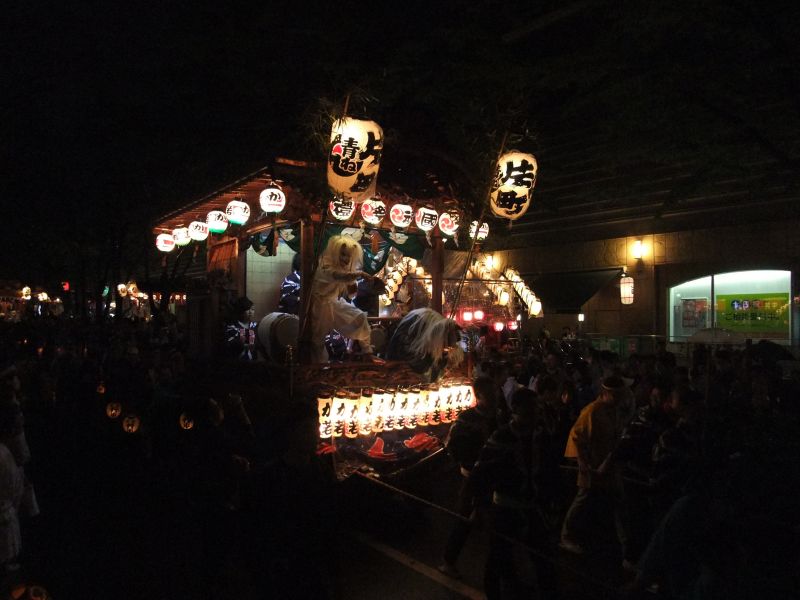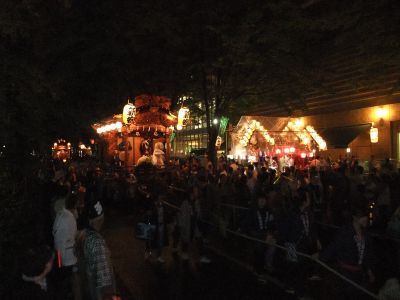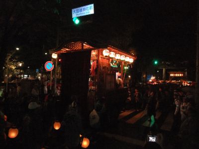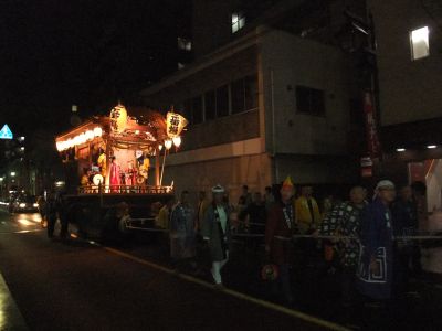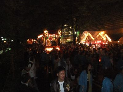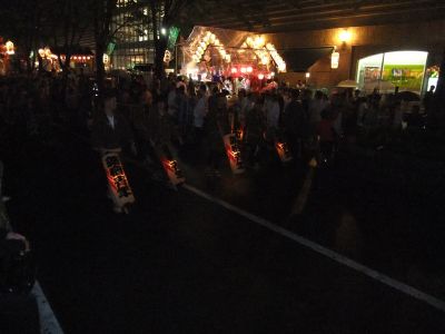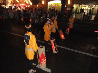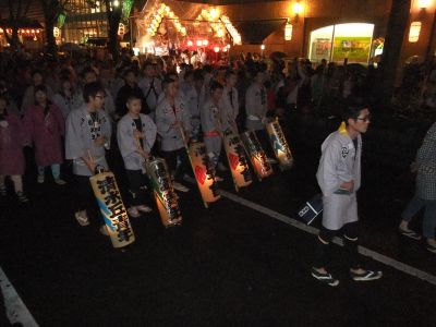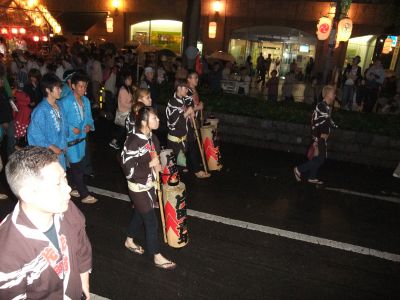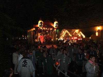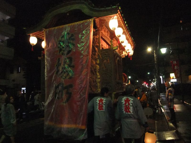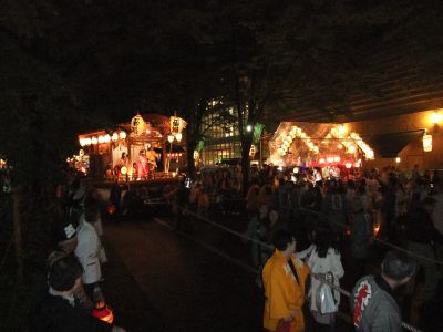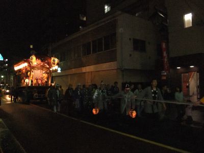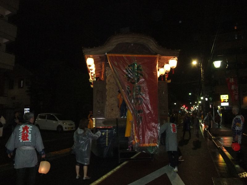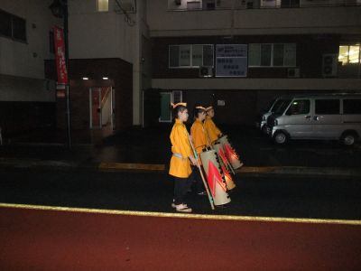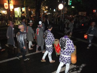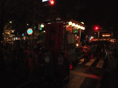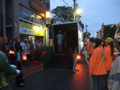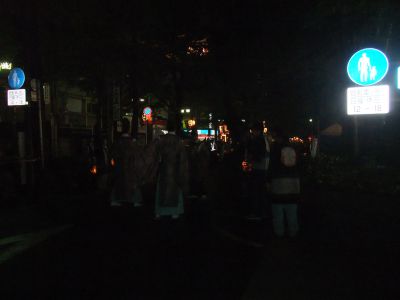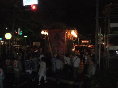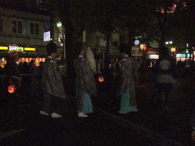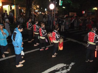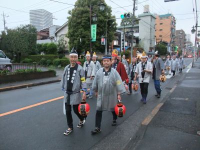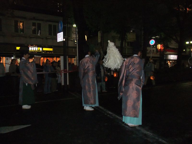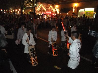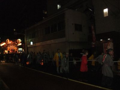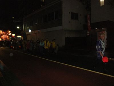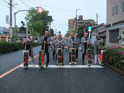旧甲州街道で、御旅所前で引き返してきた欅若連とすれ違う。
