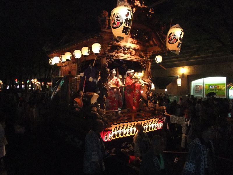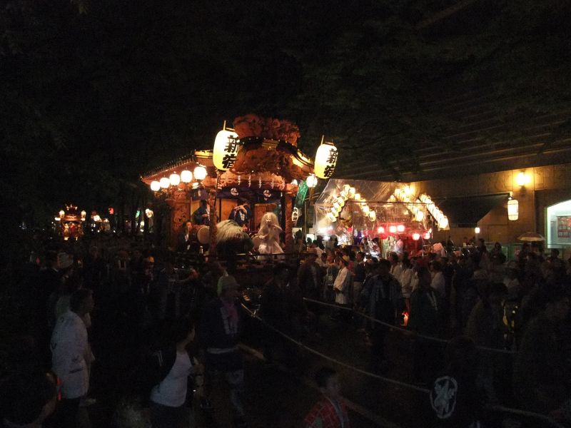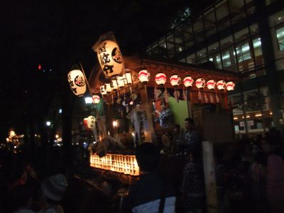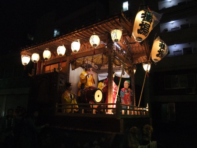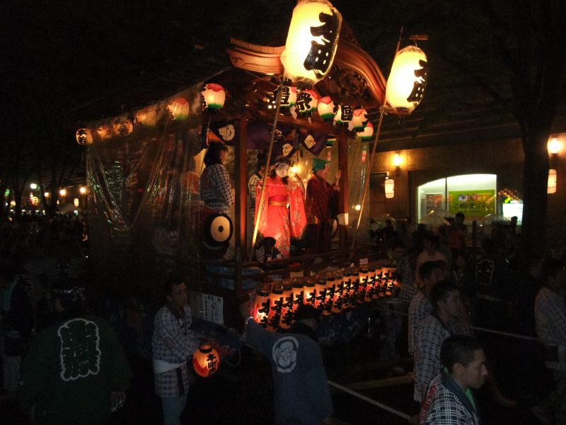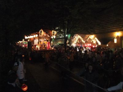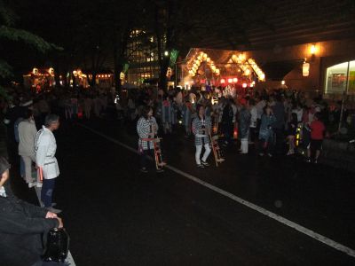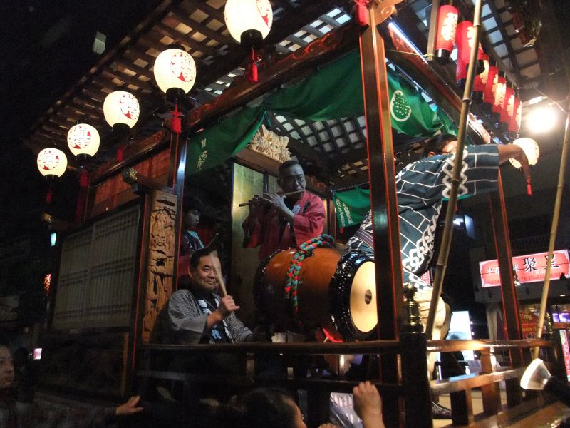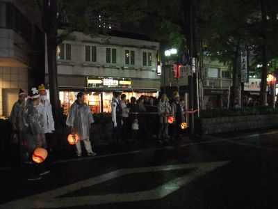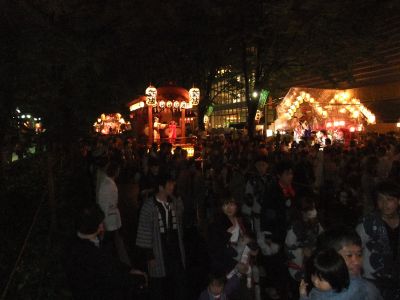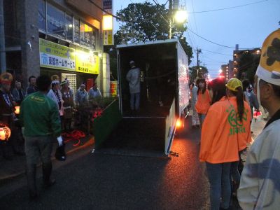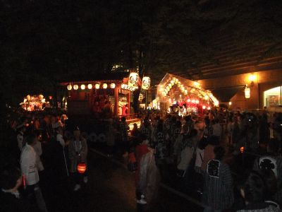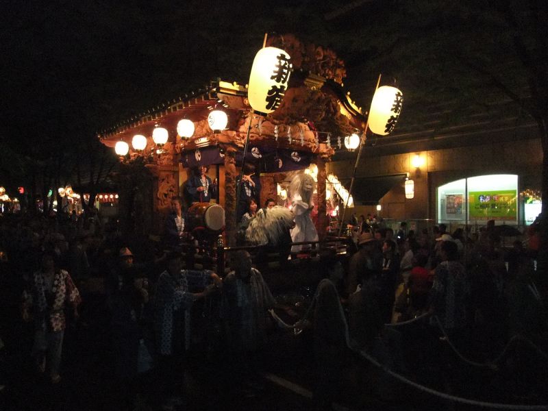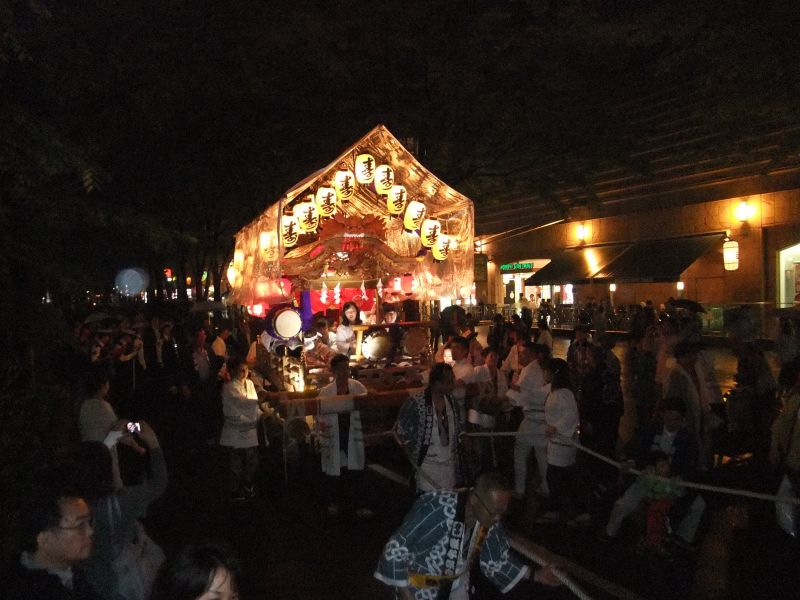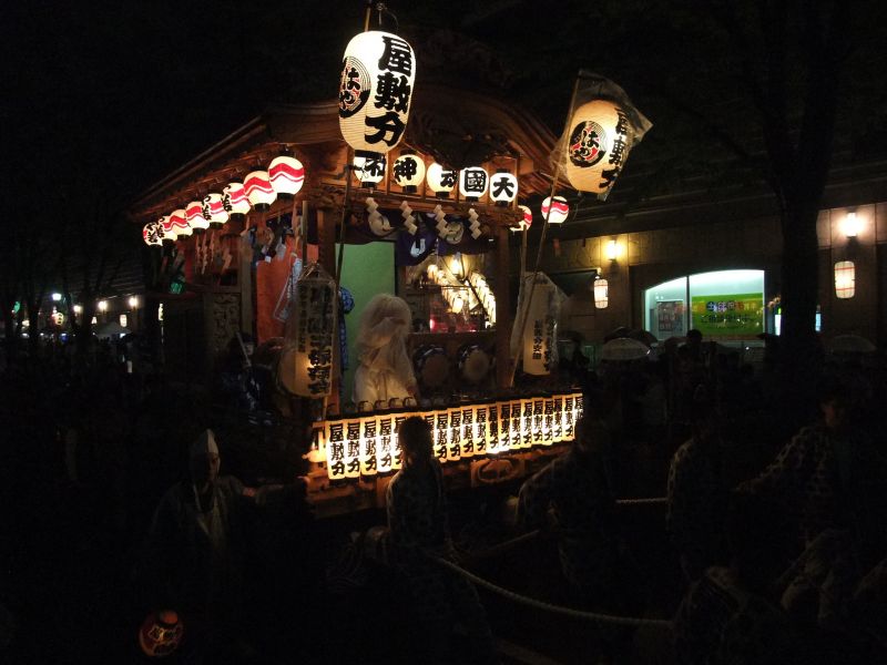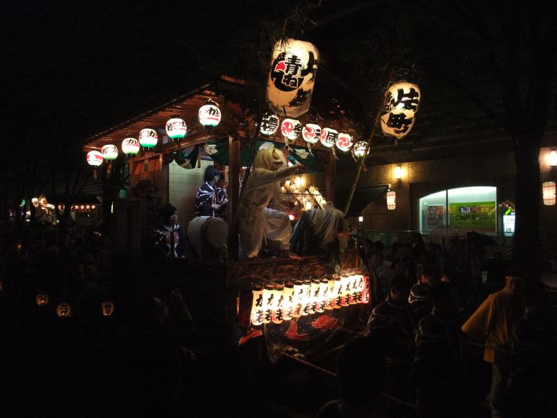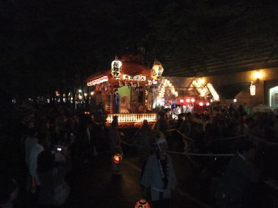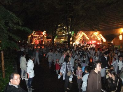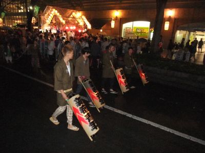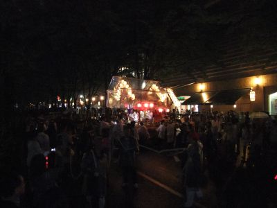 旧甲州街道で、御旅所前で引き返してきた欅若連とすれ違う。