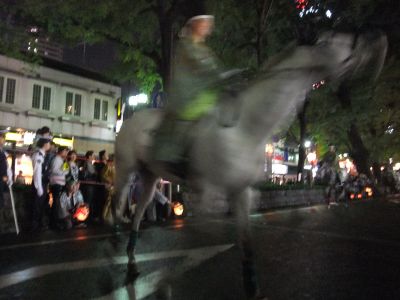 そして馬は神社に入り、我々は欅並木の警備の場所へ。