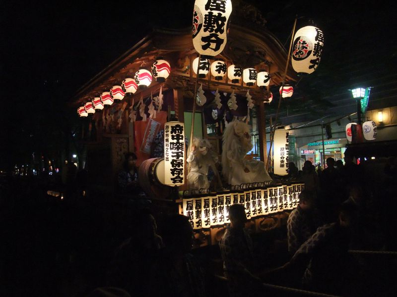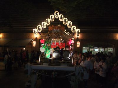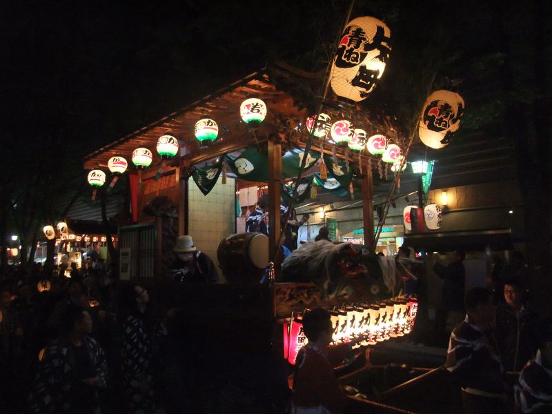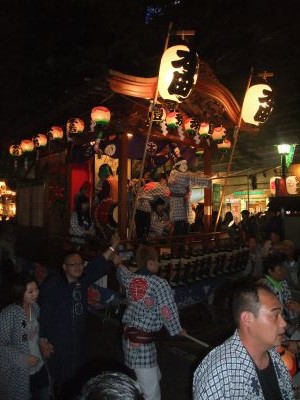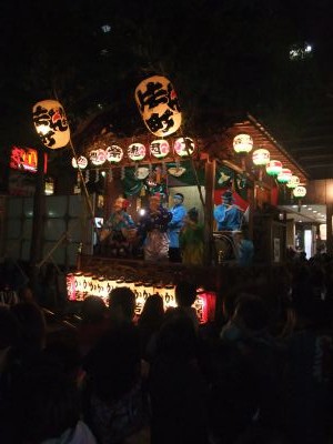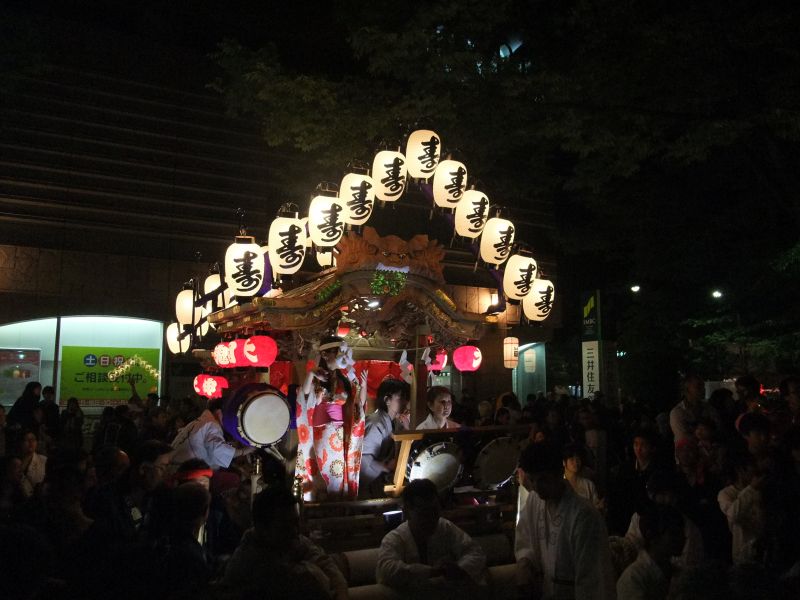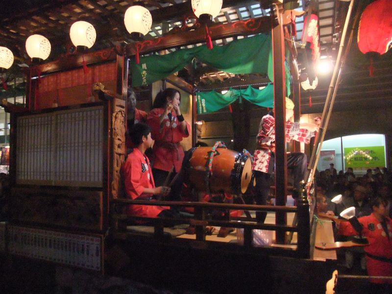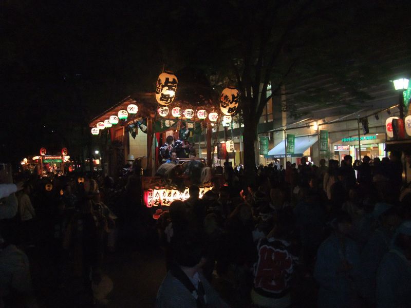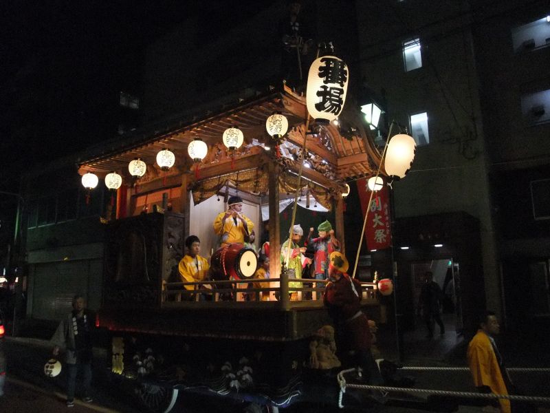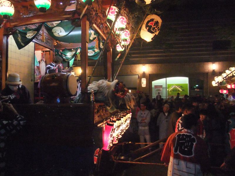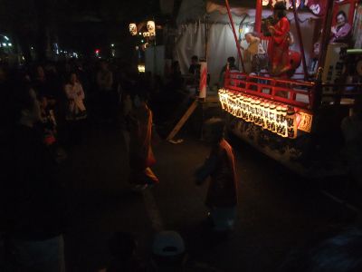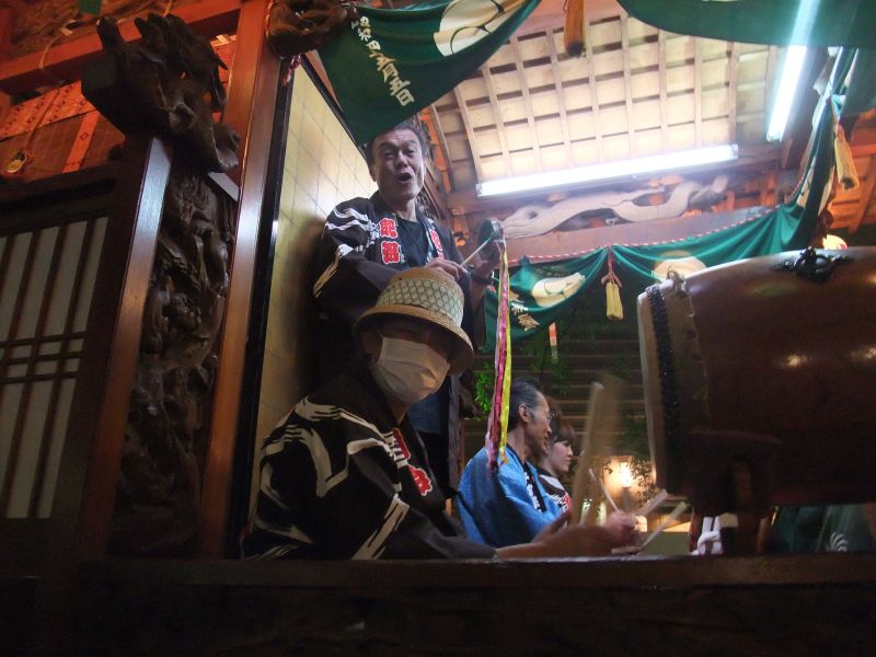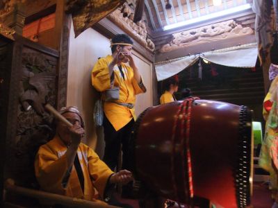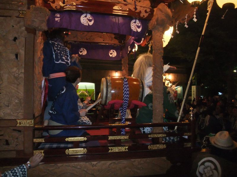 山車が囃子の奉納中です。馬がくると共に囃子は一度打ち止めになります。