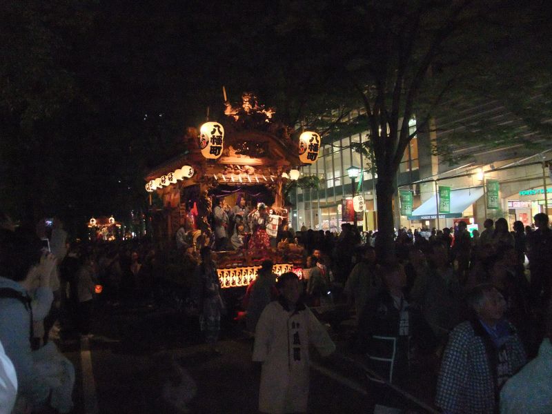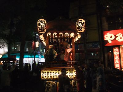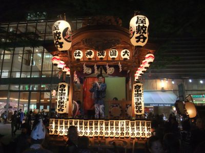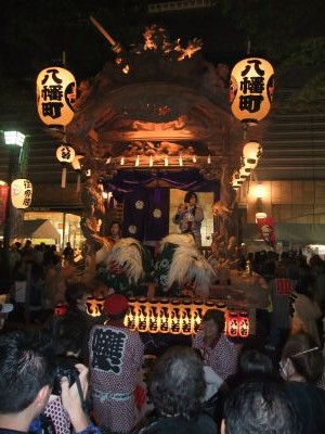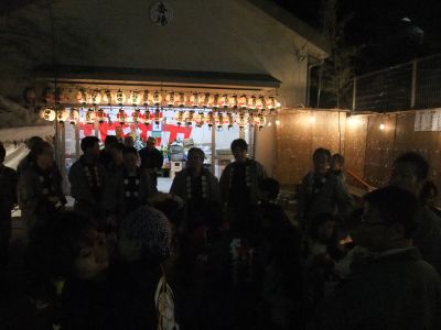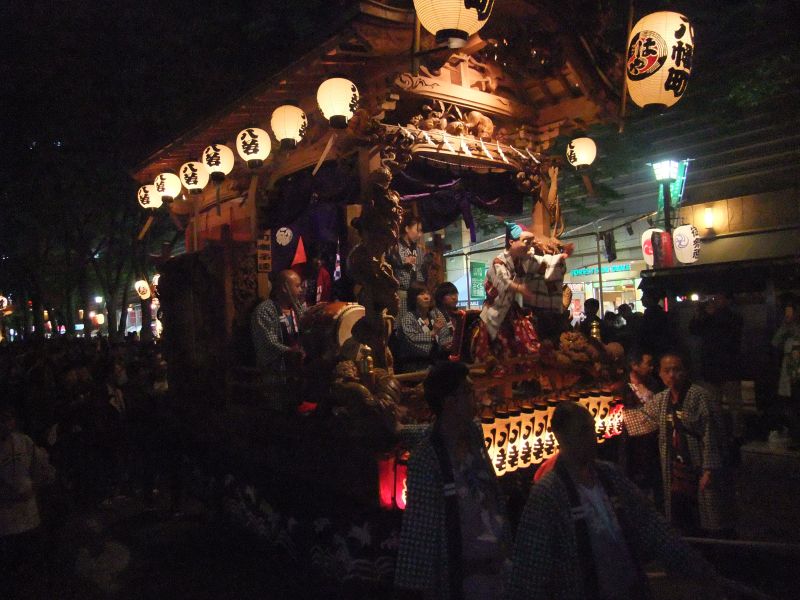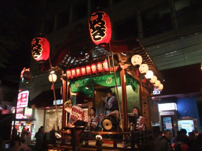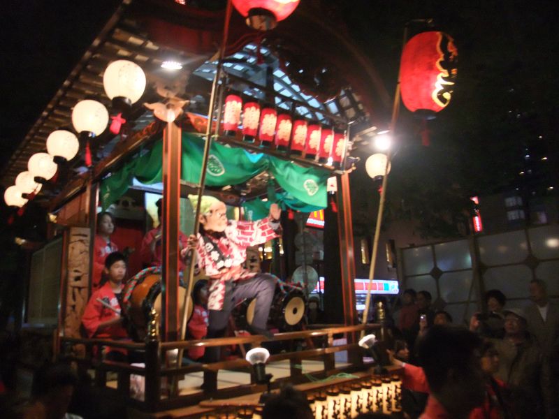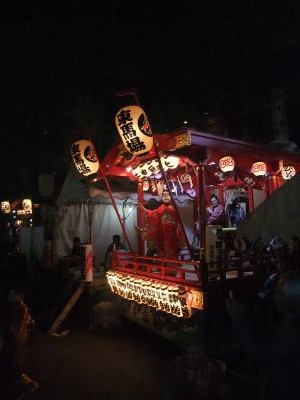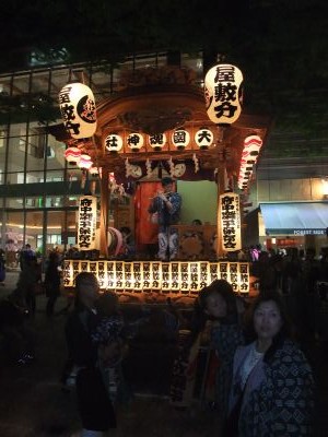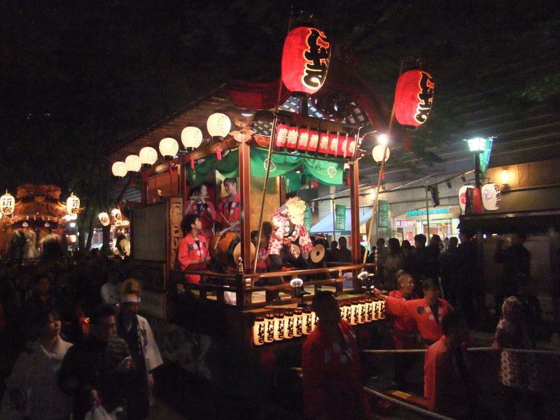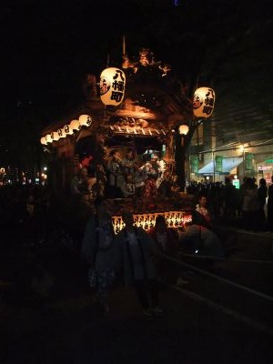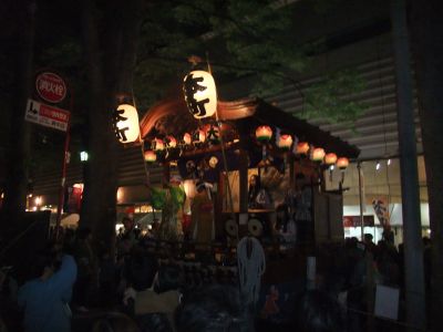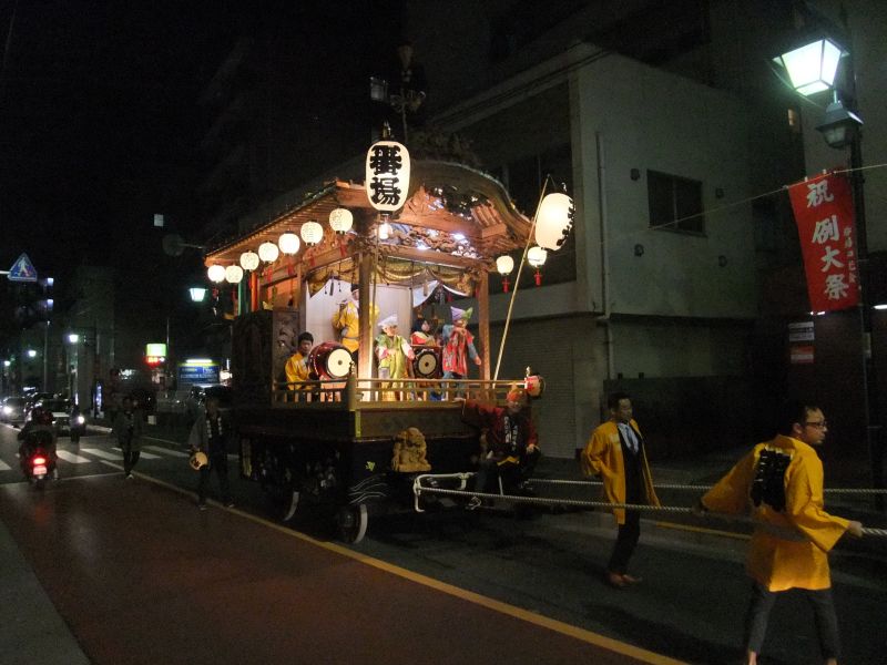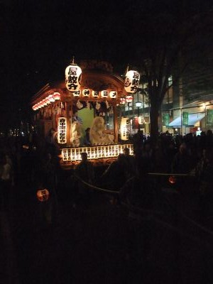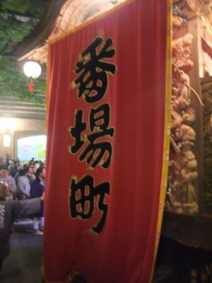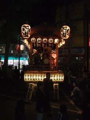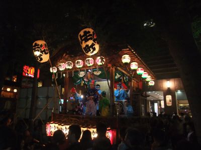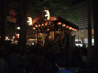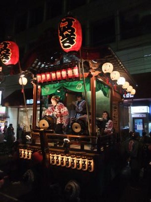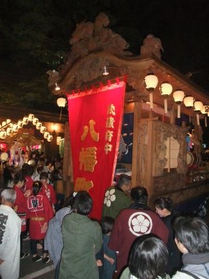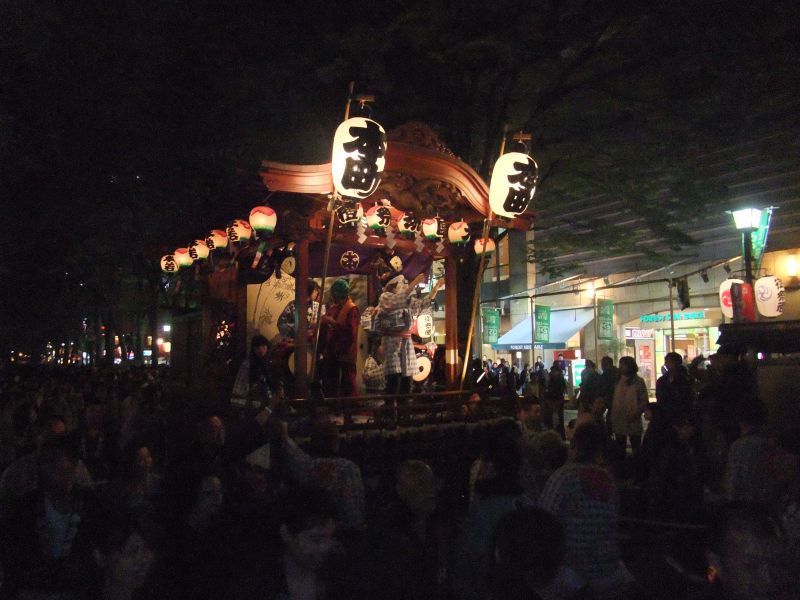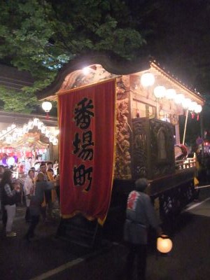 山車が囃子の奉納中です。馬がくると共に囃子は一度打ち止めになります。