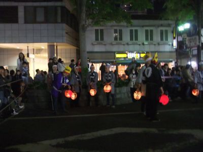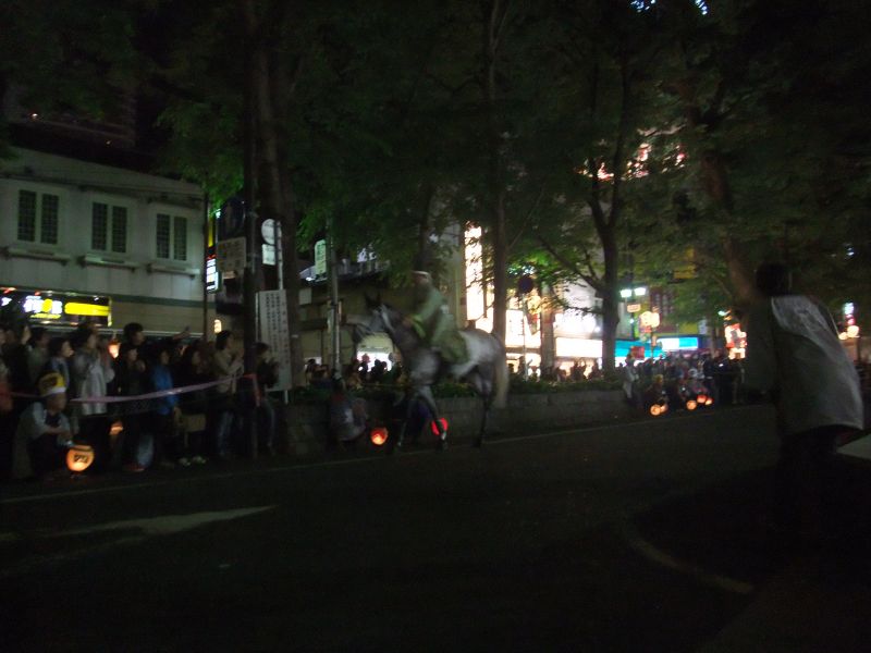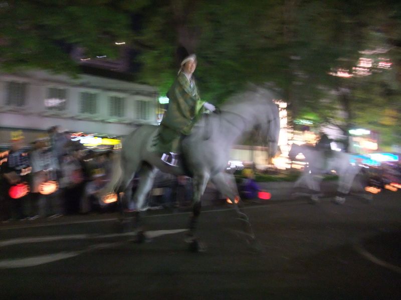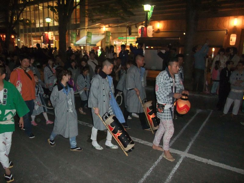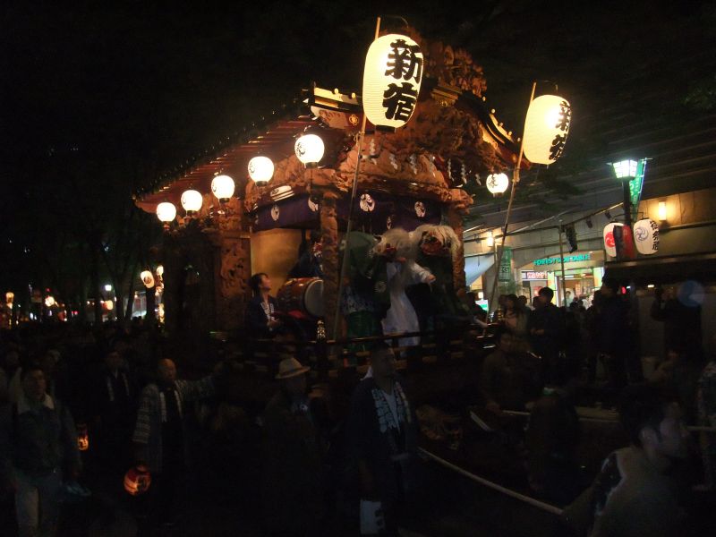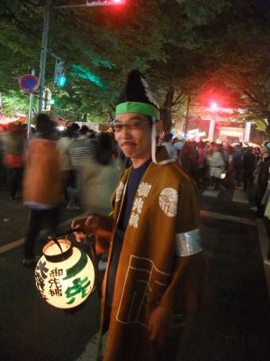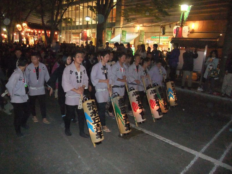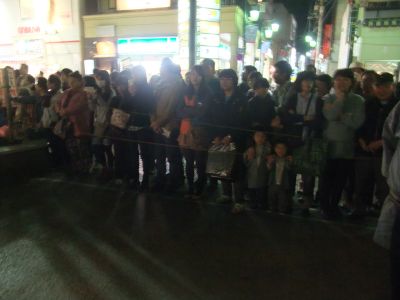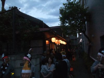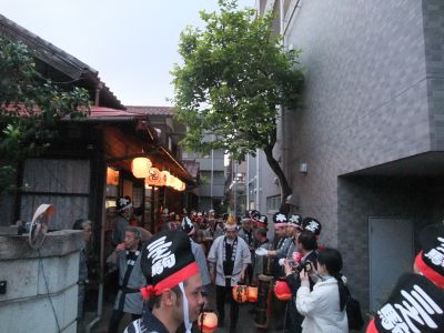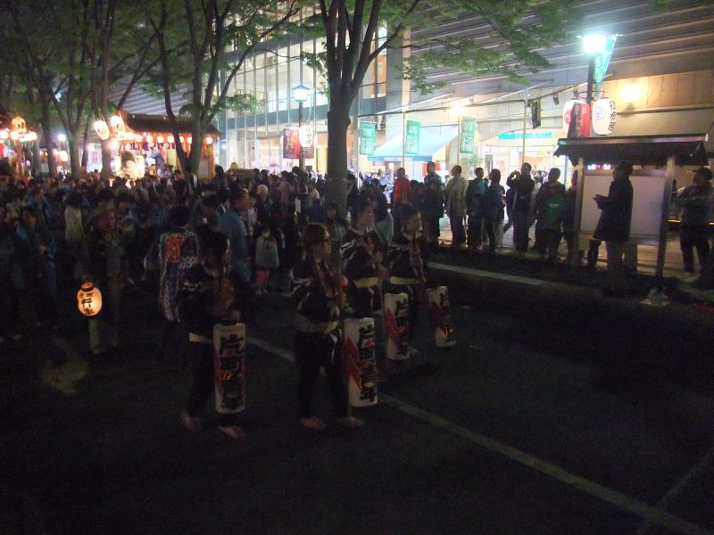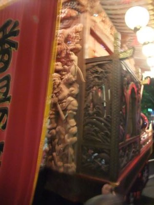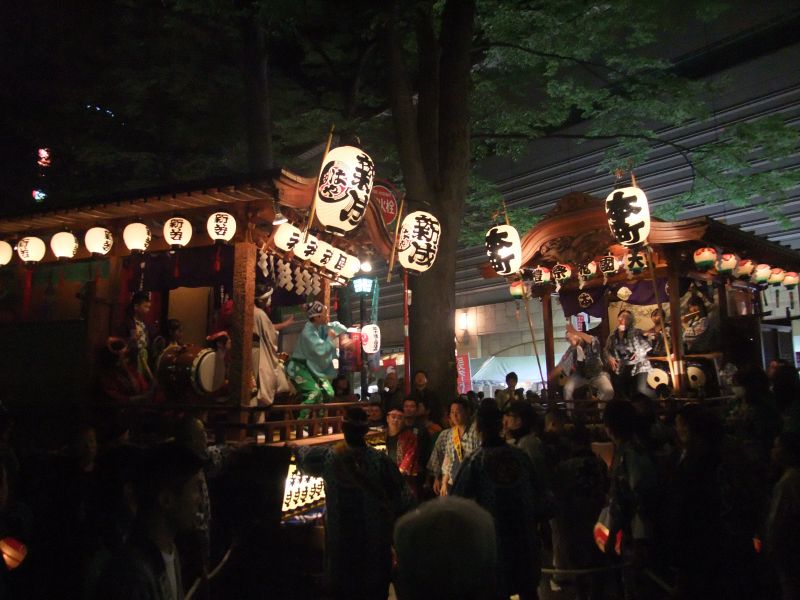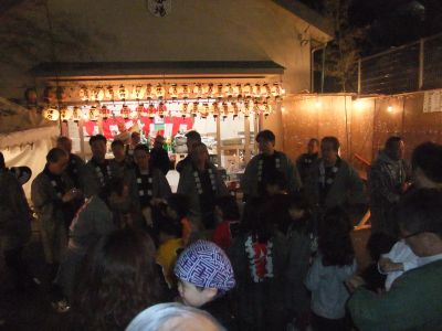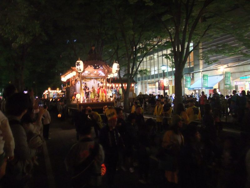 山車が囃子の奉納中です。馬がくると共に囃子は一度打ち止めになります。