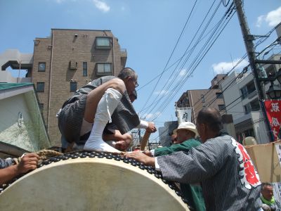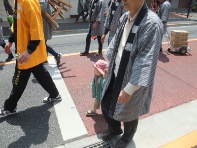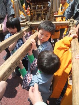 ぶら下がることも出来ないけれど、神輿の側についていたいんだよね。