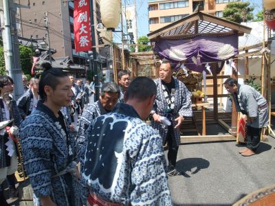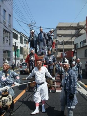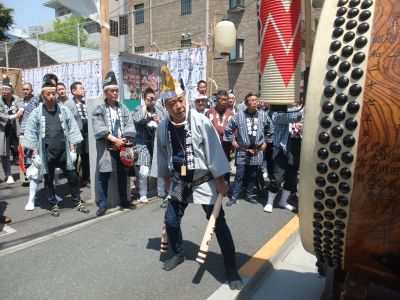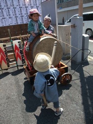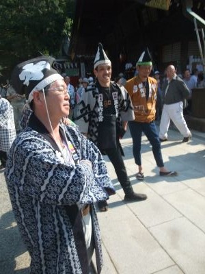御本社太鼓講中の町内会所への挨拶回りと、神社へお参り。