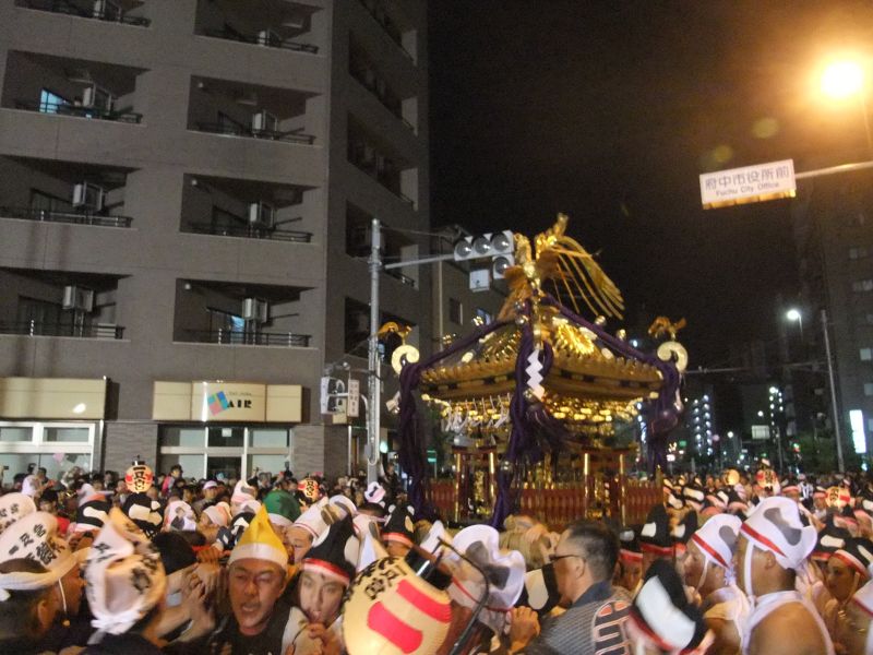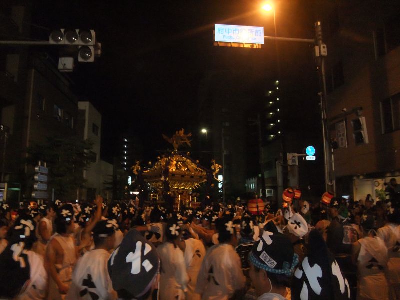 旧甲州街道と府中街道の交差点。一之宮が揉まれています。