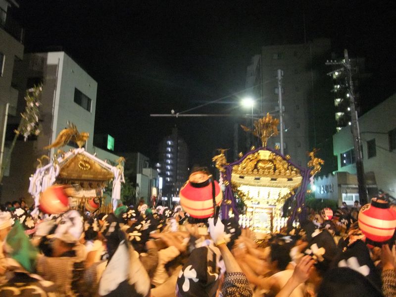 交差点で揉み合う御本社と六之宮。