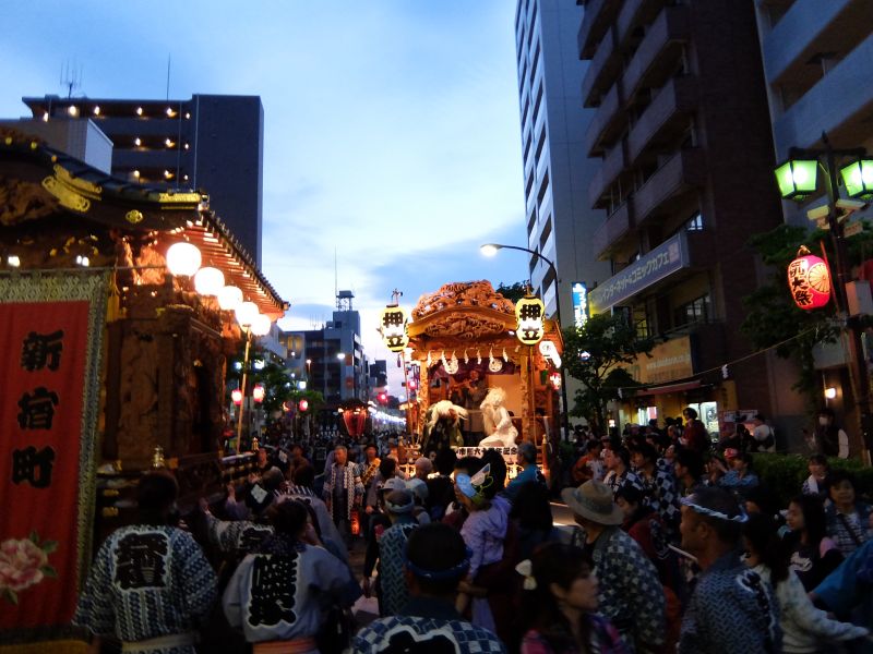 本町関係の山車が集合。宵宮を盛り上げます。