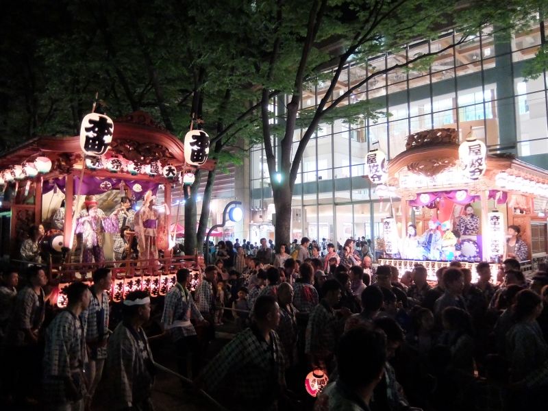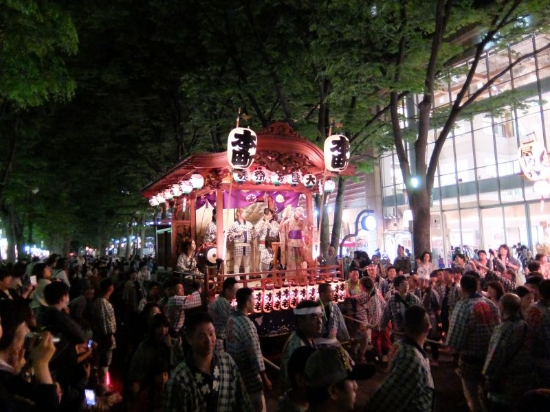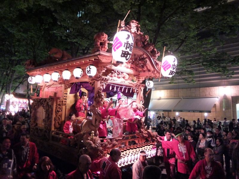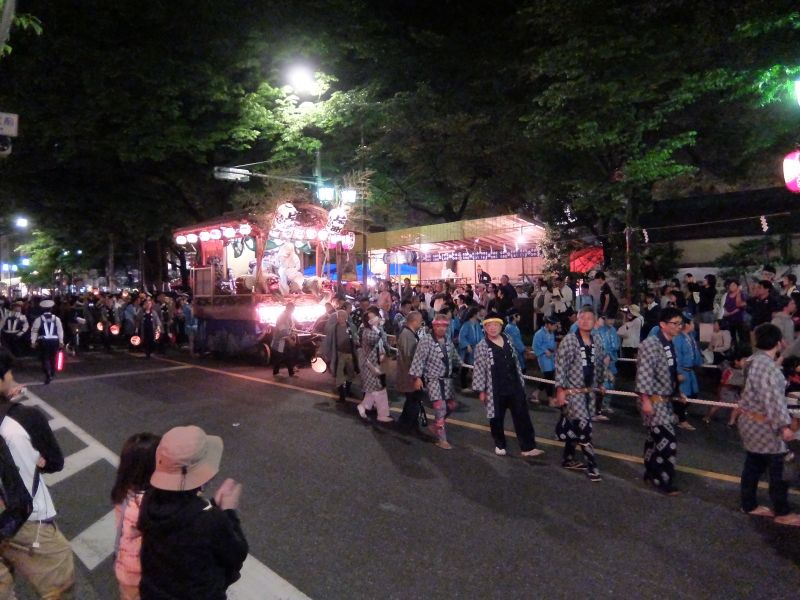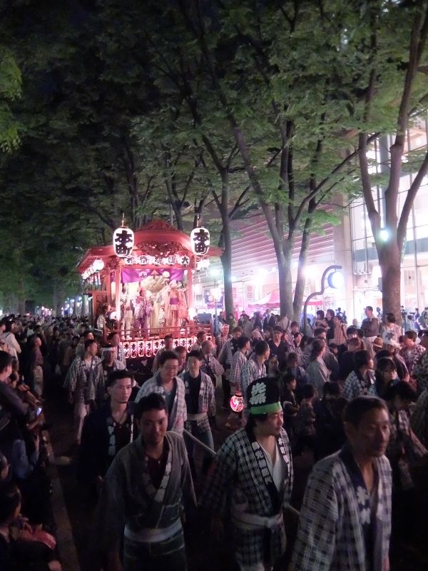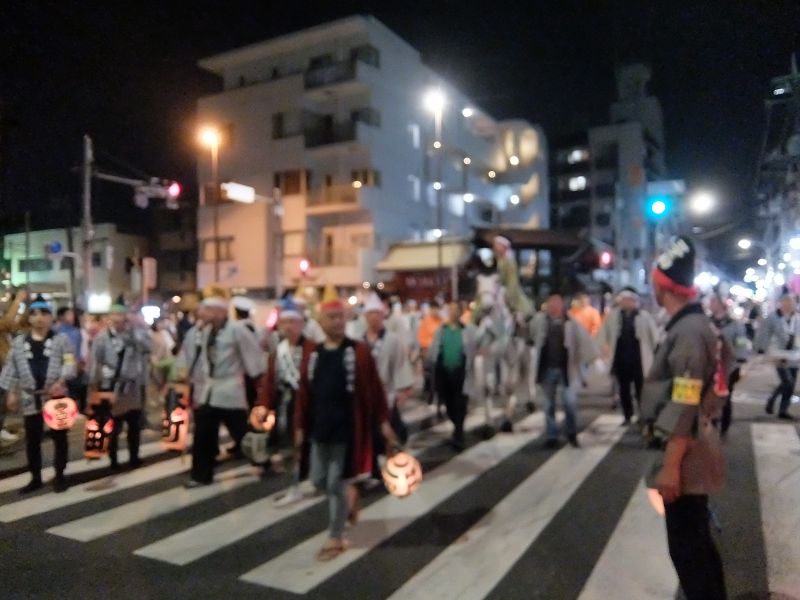 山車が町内に戻りはじめました。