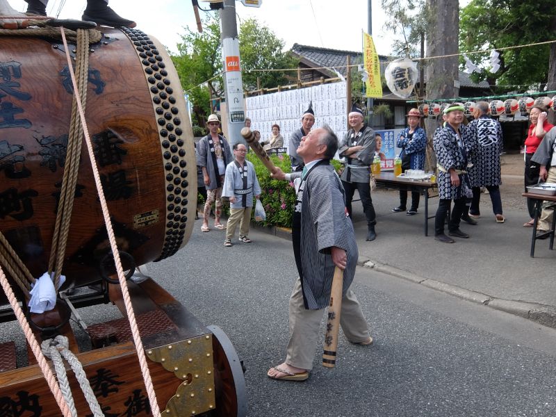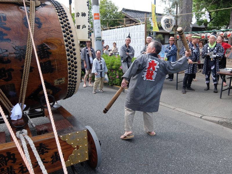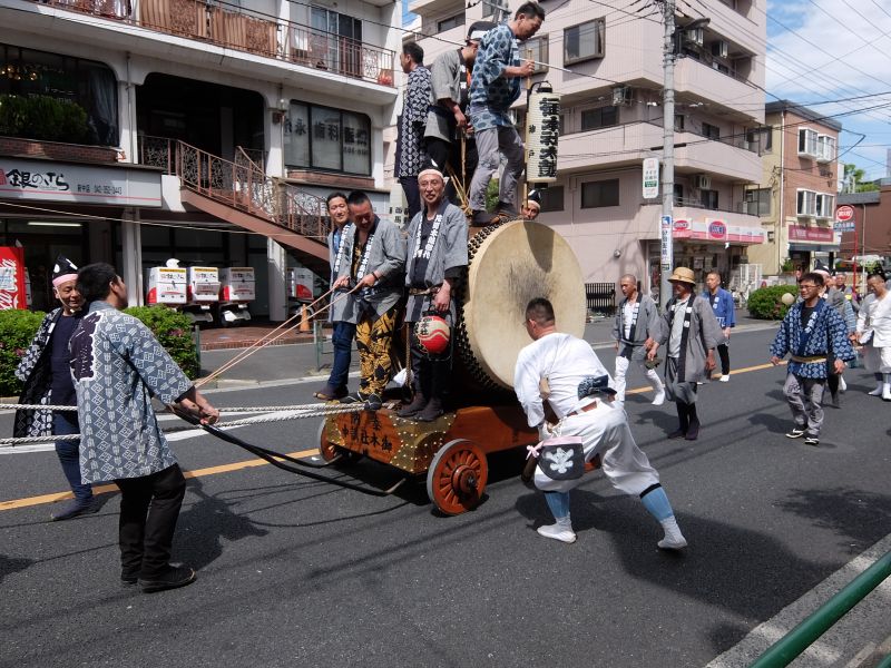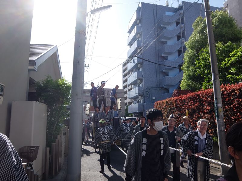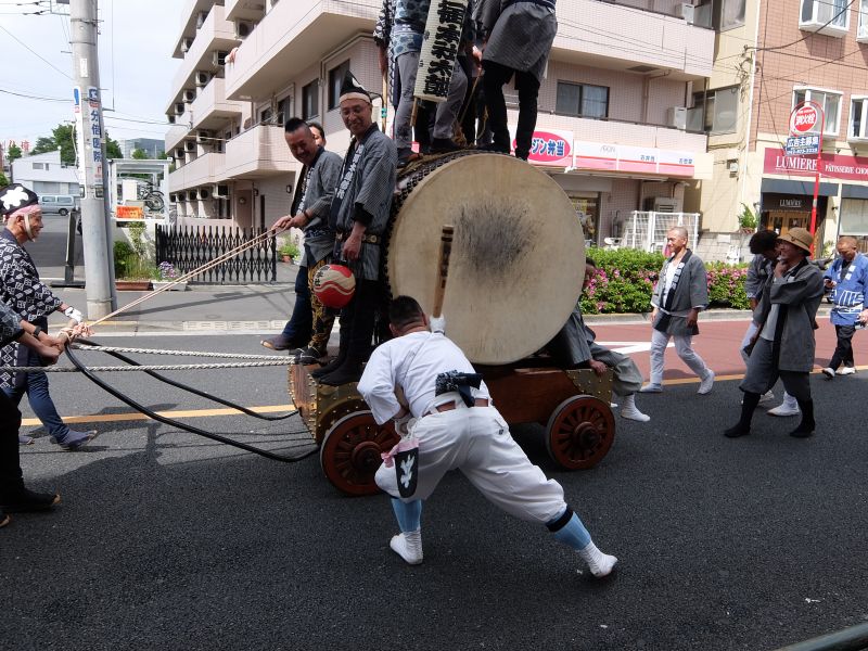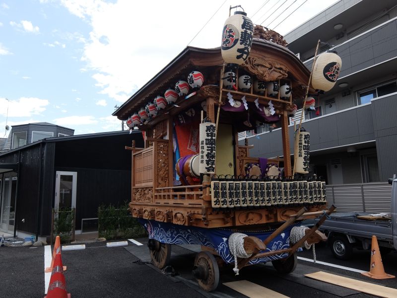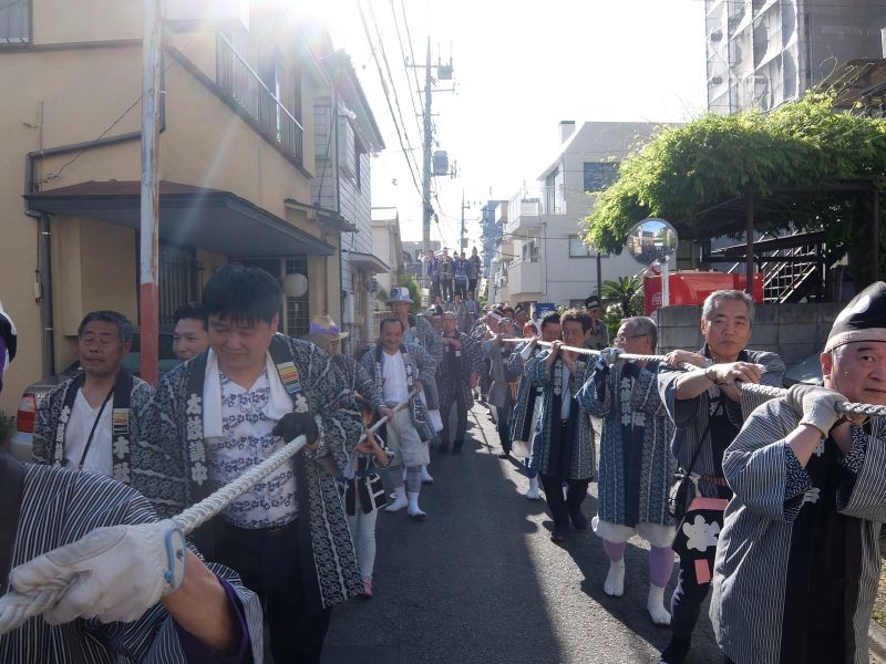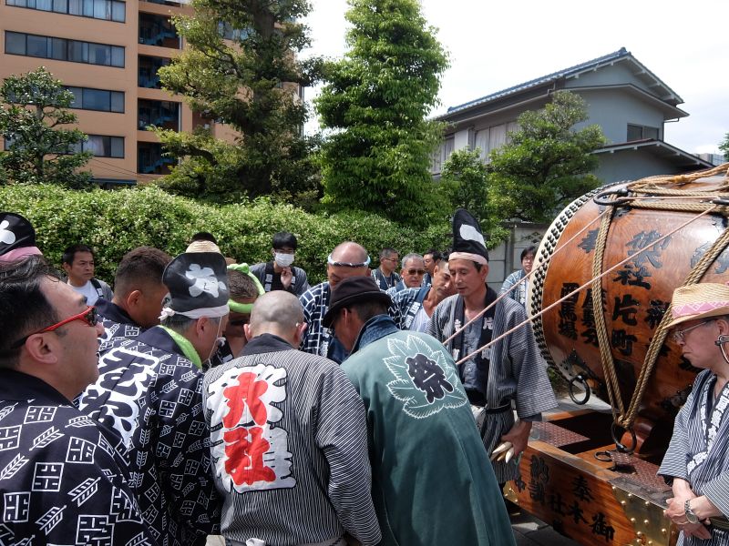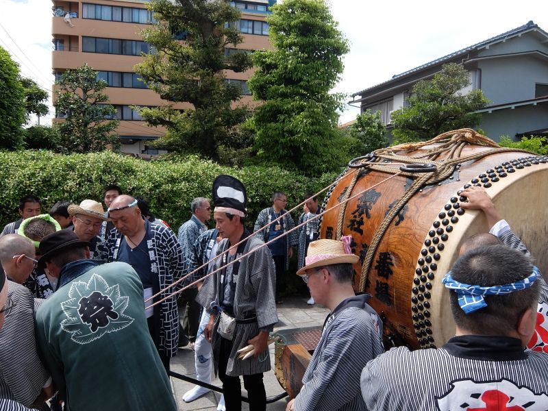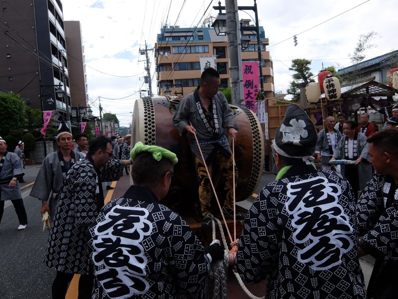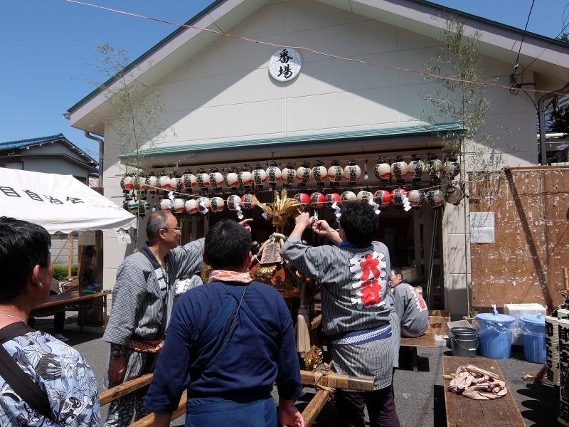 太鼓のロップ掛け完了。町内廻り開始です。