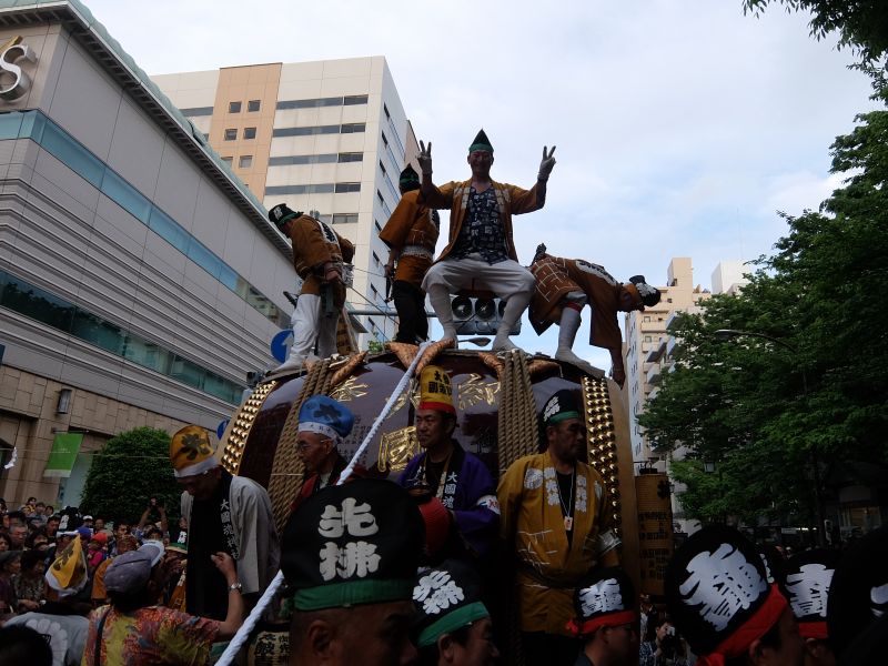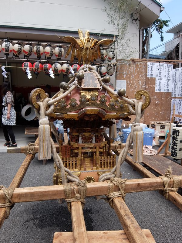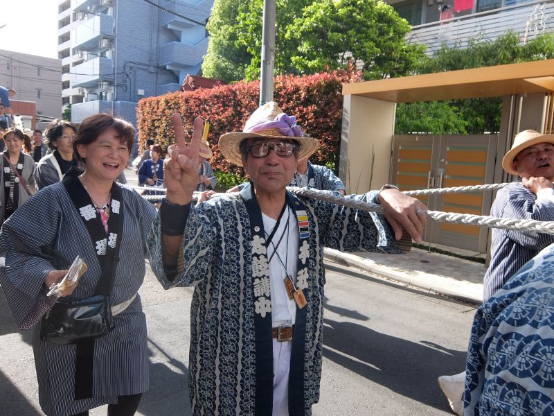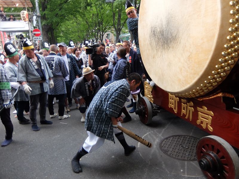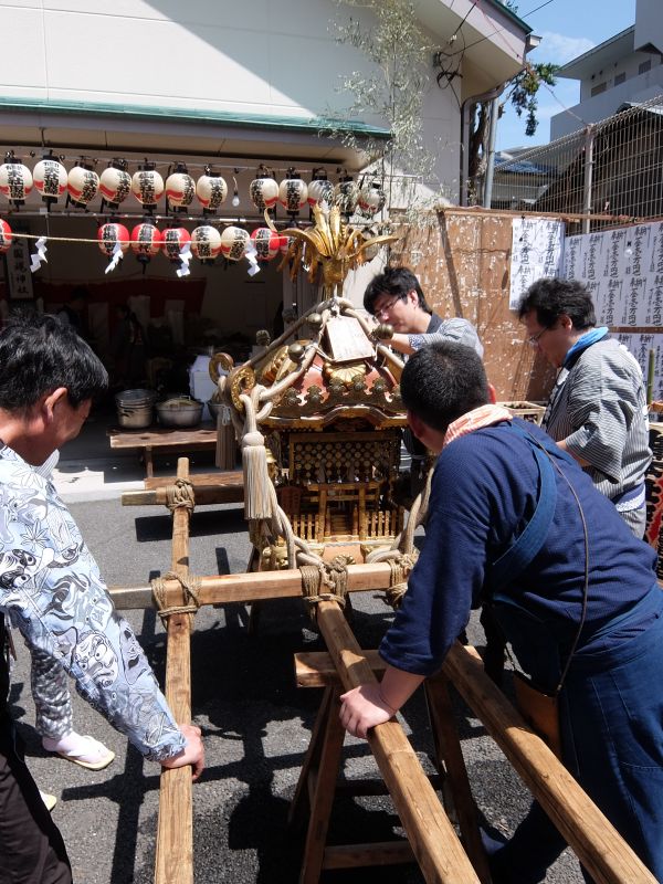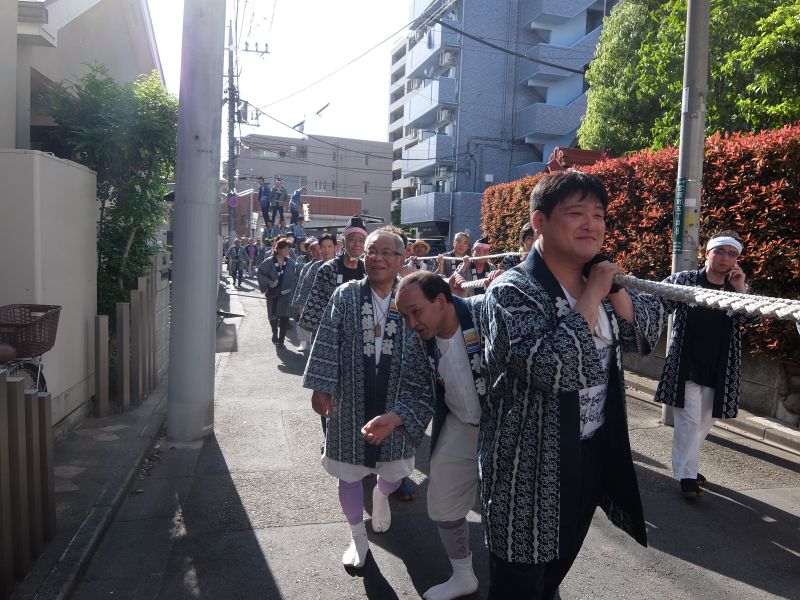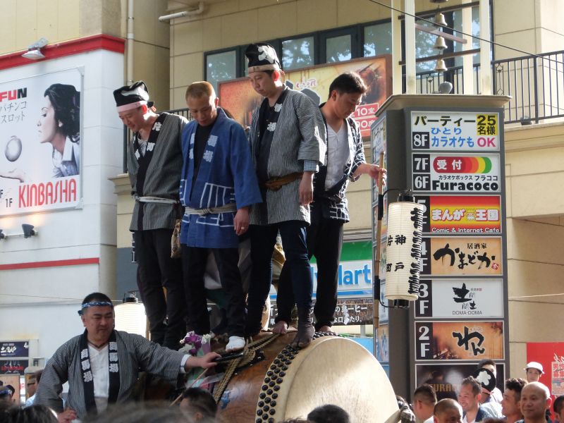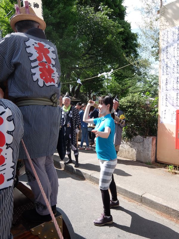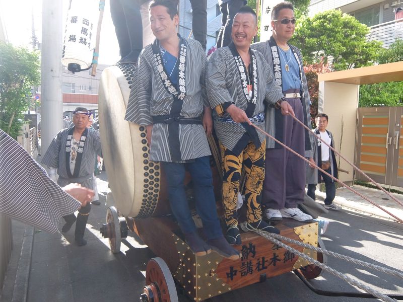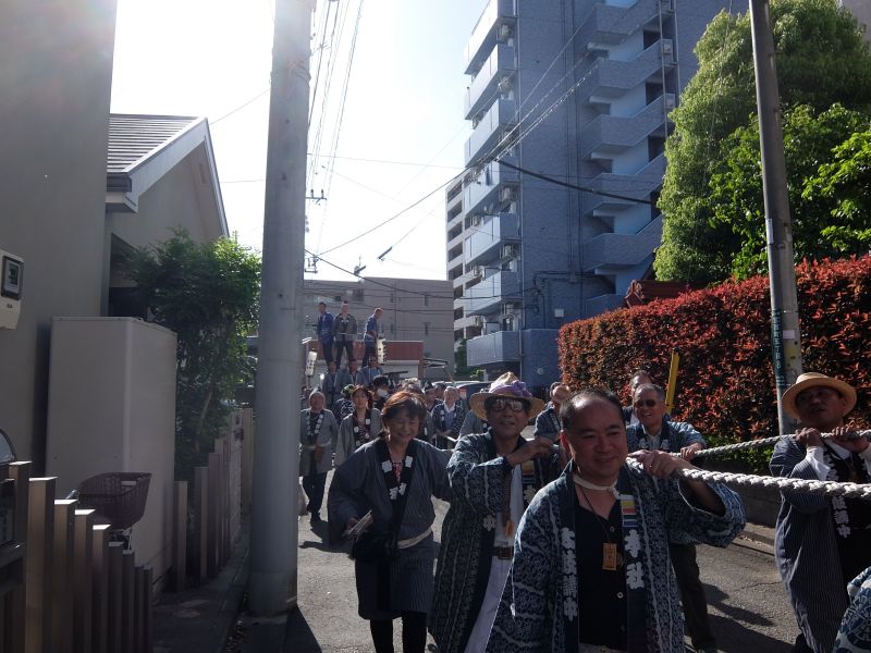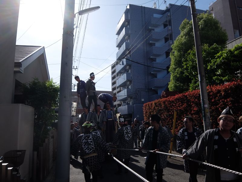 太鼓のロップ掛け完了。町内廻り開始です。