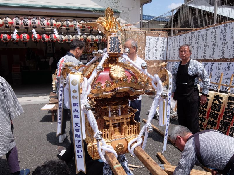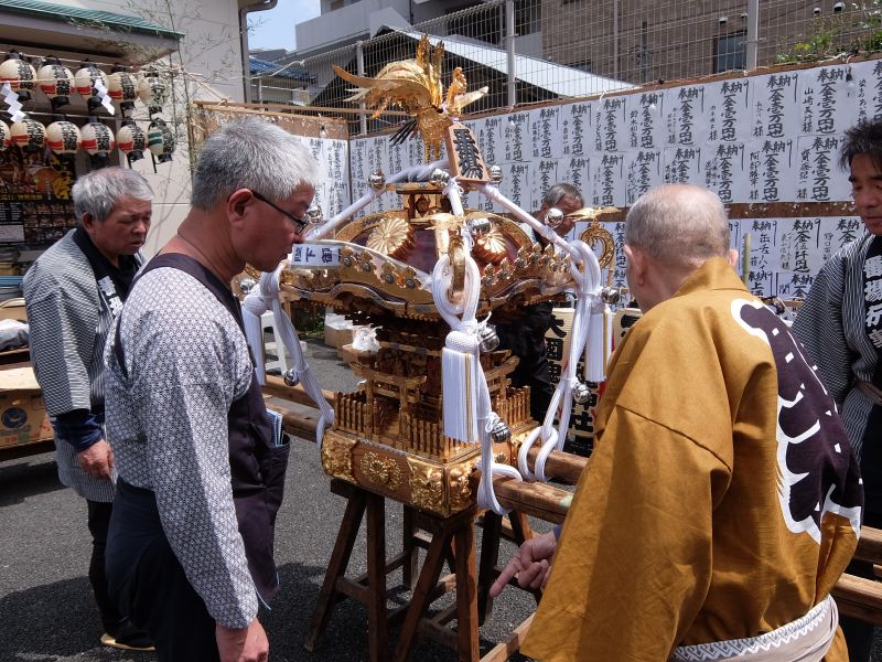 太皷は会所に移動させ、子供神輿の出発準備を横にこちらも。