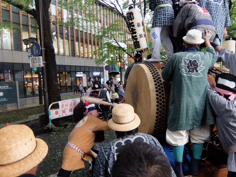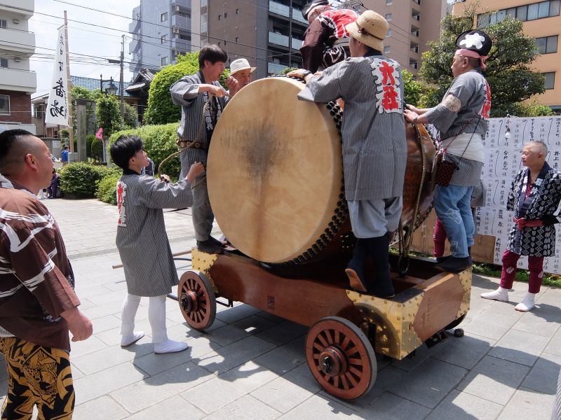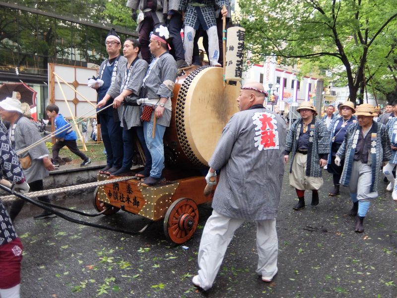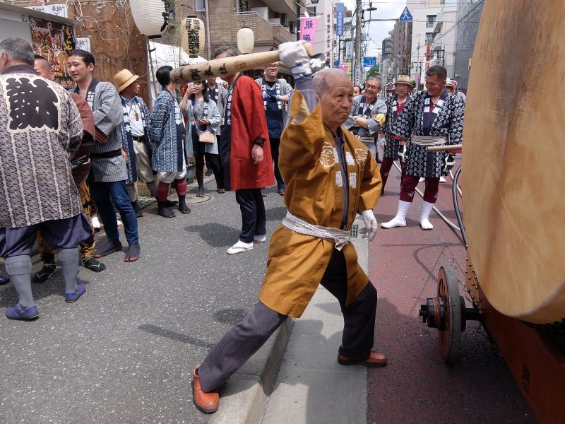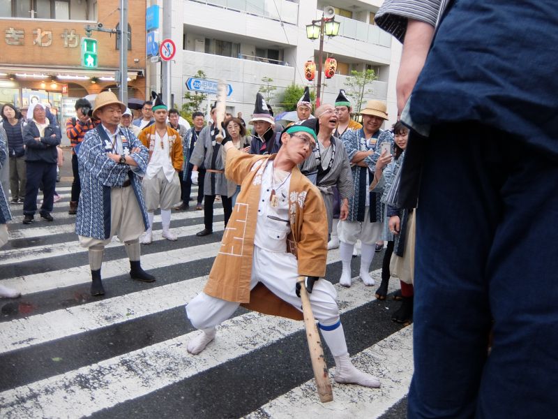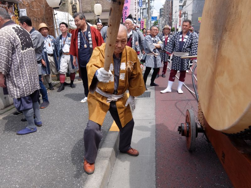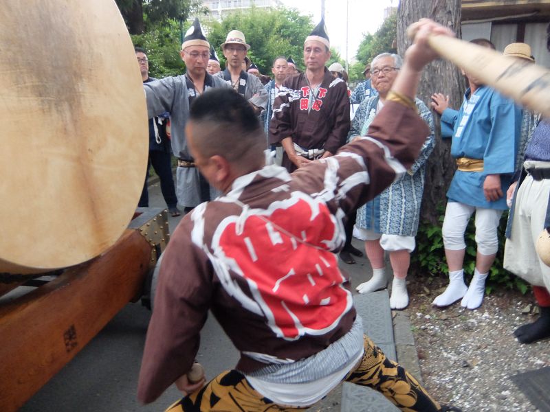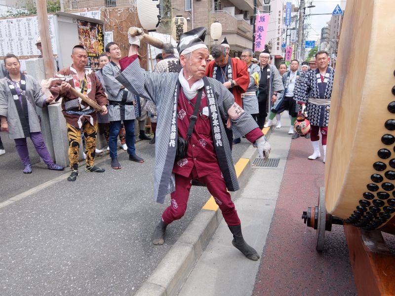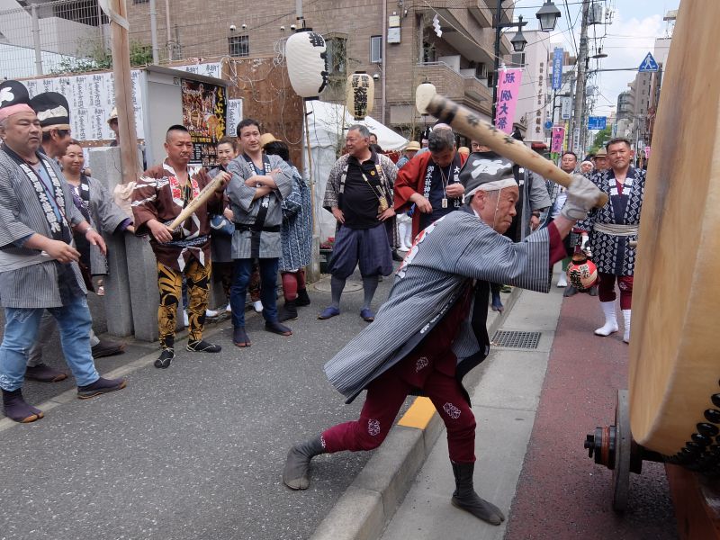 叩くのは太鼓を”忘れてきてしまった”御先払の面々。