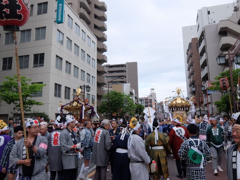 今年は日が出ていなくてイマイチですが、恒例の2基並べての還御。