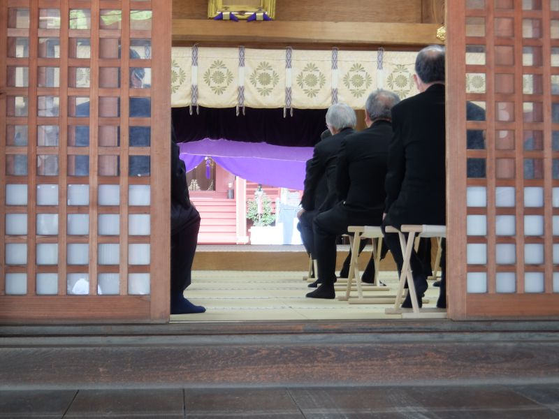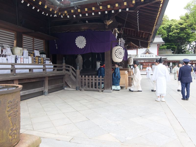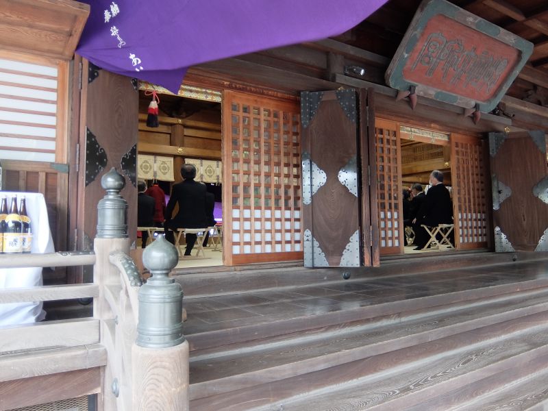 鎮座祭。ちょっとわかりにくいですが、本殿前に唐櫃が置いてあります。