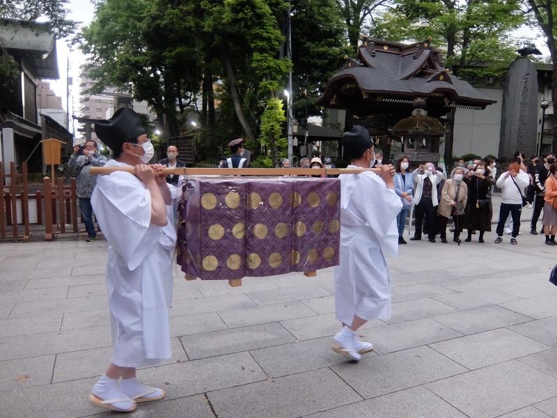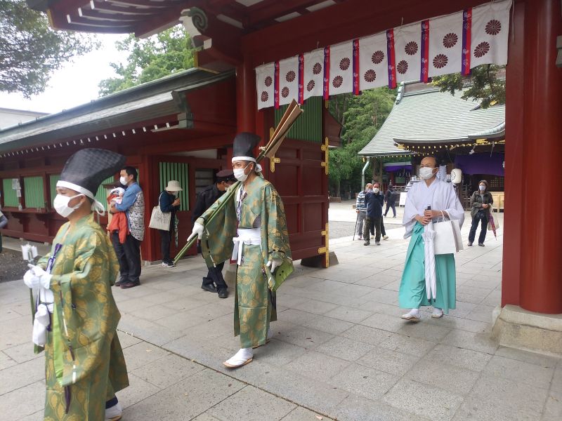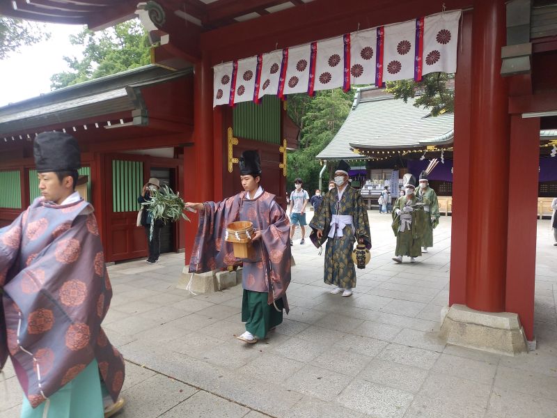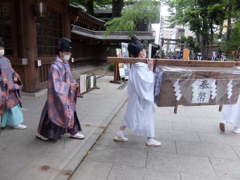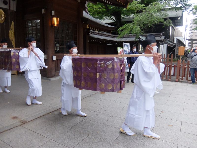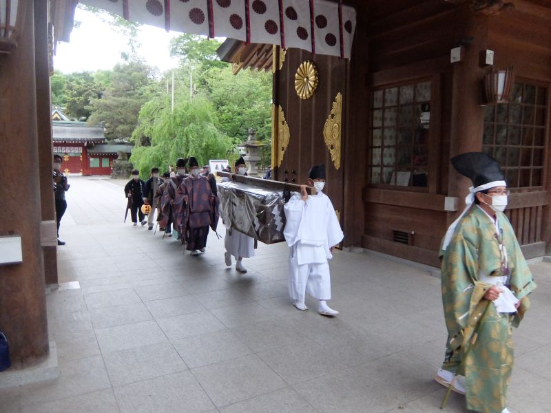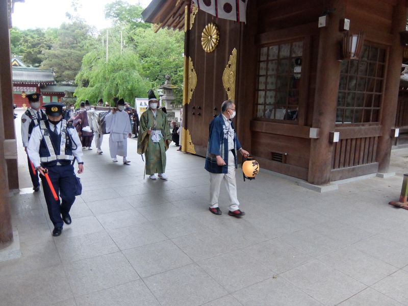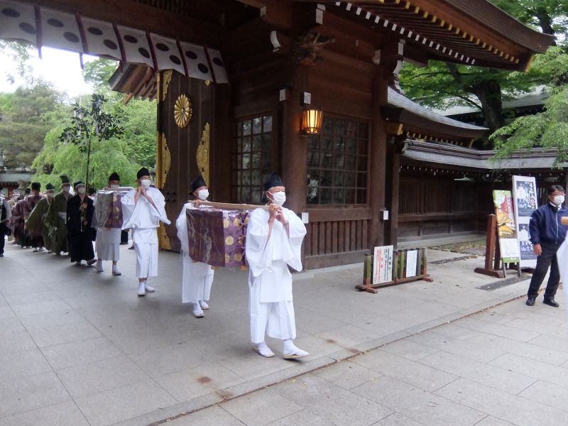 本社神幸行列。一〜三之宮、四〜六之宮、御本社の唐櫃。