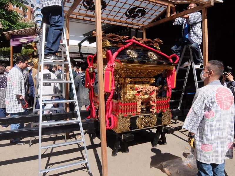神輿の飾りつけも終わり。