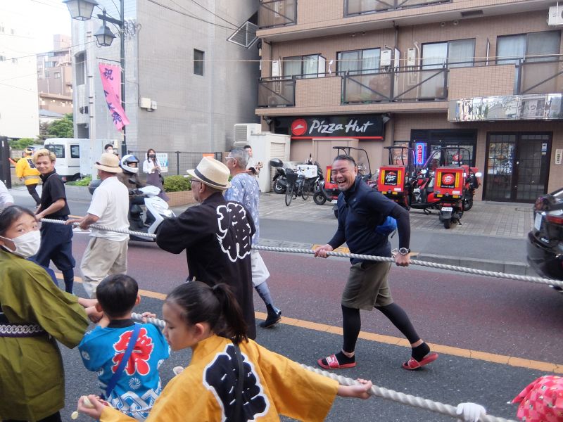 なぜか番場の山車を引く御先拂の懲りない面々。