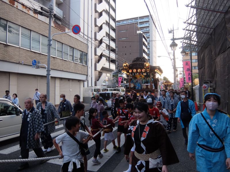 片町の山車が来ました。これから山車は欅並木に。