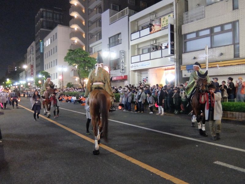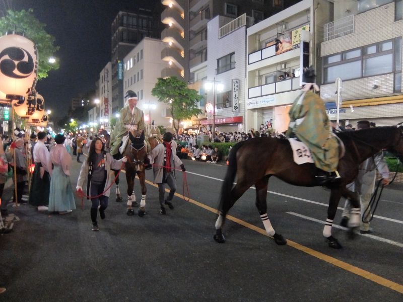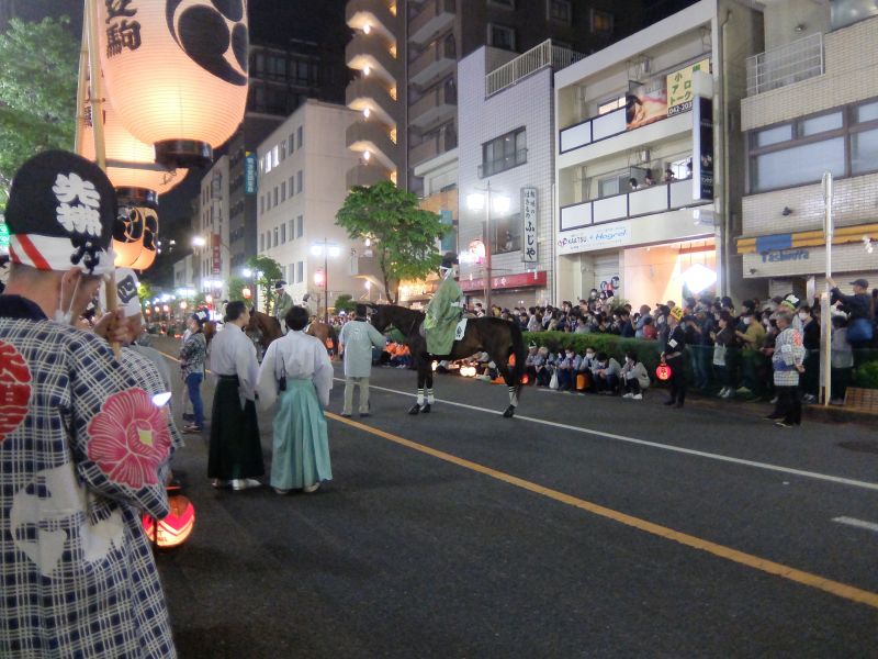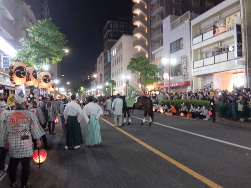 馬がそろい、古式競馬式、駒くらべ開始。