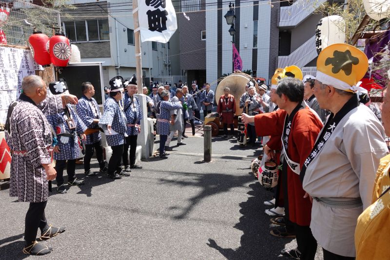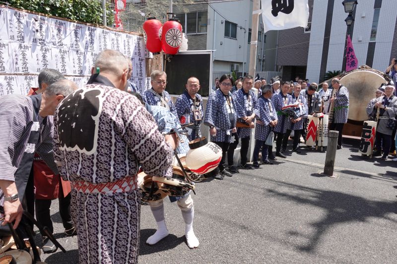太鼓を講中に引渡し。